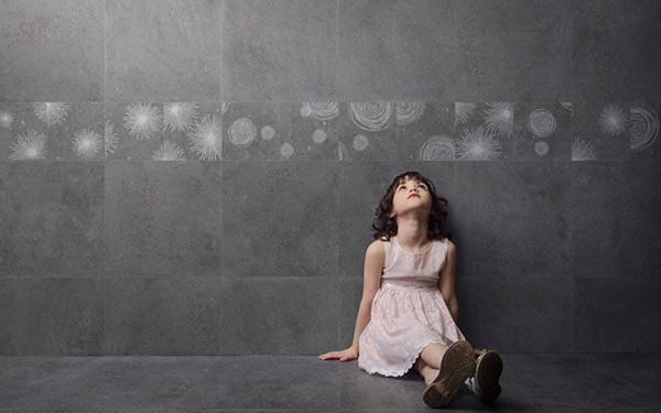 The combination of gravel and cement, supplemented by flowing water is soft, flowing freely. Little stars, like embellishments, create a soft and natural feeling.